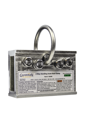 The Guardian Fall Protection Two-Way Universal Standing Seam Clamp is lightweight, reusable, and easy-to-use. This product possesses an all steel construction with galvanized finish making it very durable. Compatible with a variety of standing seam designs.