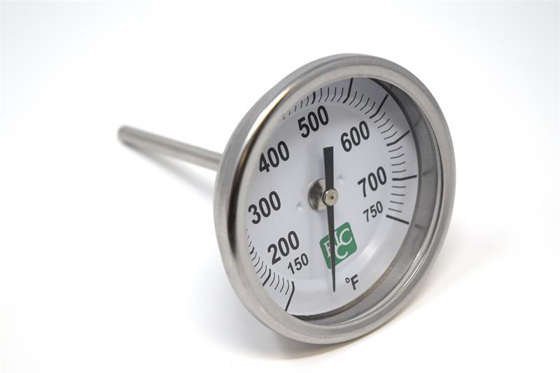 4 inch stem thermometer. 1/2" Male Threads. 3 inch Dial. 150 degrees F to 750 degrees F.