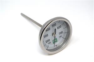 6 inch stem thermometer. 1/2" Male Threads. 3 inch Dial. 150 degrees F to 750 degrees F.