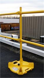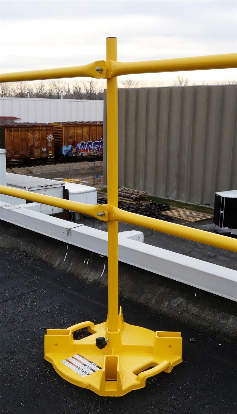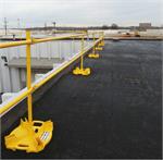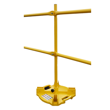 The Ballasted Guardrail is a fast, easy, and economical way to erect temporary guardrail systems to keep workers safe while increasing their productivity. Heavy weighted bases prevent tipping and allow configuration to adapt to almost any situation. Weighted Base Guardrails can be used at perimeters, open curbs, skylights, stair openings and anywhere else a leading edge requires fall protection. Meets and exceeds OSHA Standards for guardrails 29 CFR 1926.502 and 1910.23.