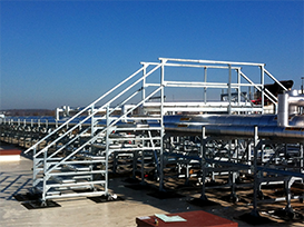 The MIRO Surefoot AccessCrossover is custom, modular and non-penetrating access solution designed to provide access over piping, duct, equipment, or high or lower areas of a roof surface.