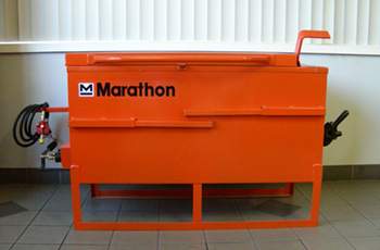 This unit can provide hot material in 30 minutes or less and is equipped with a draw off valve, hand agitator, temperature gauge, hinged lid, lifting handles, propane burner and hose and regulator. The double headed burner is rated at 160,000btu.