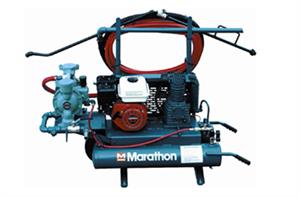 Marathon offers two types of portable spraying systems to suit your material requirements. The DPS5 is effective for the application of cold-pour crack fillers. This unit provides great efficiency because the system automatically shifts to neutral when the spray wand is shut off.