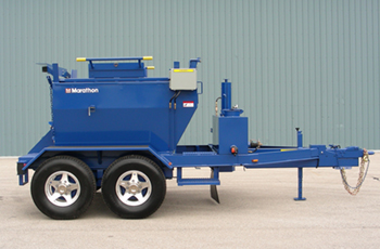 • Material hopper is heated by an under fired, baffled oil jacket to improve heat distribution, eliminate hot spots and reduce burner cycling. • 120 volt 1500 watt overnight heater to reduce start up time and keep material warm. • Centrally located, horizontal heat grid allows for heat transfer through the material. • Rainproof exhaust stack. • (2) tool holders • All necessary stop, turn and marker lights. • Units receive primer coat prior to finish coat. • Standard paint color is epoxy blue.