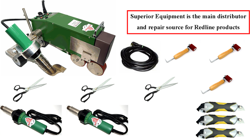 1 - Redline R-Welder TPO/PVC Robot, 220V/4200W, Stainless Steel Case - 1 year warranty 3 - REDLINE R-1600 Auto-Cool Heat Guns, 120V/1600W, Only heatgun that will cool itself by one switch, Includes hard plastic storage case and 40mm tip 1 - 100' ROBOT CORD 3 - Combo Silicone Roller and Seam Probe 3 - Alloy Knife 3 - 10'' Heavy Duty Shears