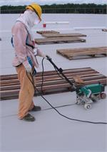 Wrinkle-free welding because of design and balance. Economic and user friendly, high welding speed and field tested. For the welding of roofing membranes and tarpaulins.