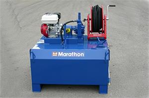 Marathon’s 115 gallon skid mounted sealer sprayer was developed with affordability in mind. This non-heated unit was designed for use with driveway sealer material such as Gilsonite, asphalt cutback, solvent based sealers, foundation coatings and concrete primers. Other sizes available. Shown with optional equipment.