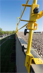 The RaptorRail™ is designed and built to keep your workers safe while enhancing their productivity. RaptorRail™ can be installed quickly and easily, yet is adaptable to virtually any situation. The crate and cart systems allow the components to be hoisted to the desired location in a single lift and be accessible at any location. The swiveling base allows finish work to the edge without removing the safety of the system. The base post and the parapet clamps have rubber pads to protect the building facade.