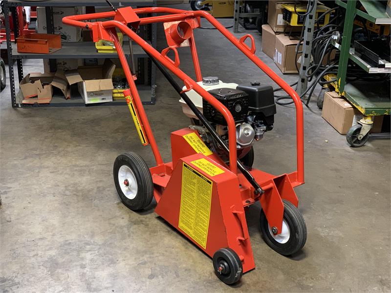 Best designed roof saw in the industry! Known for its "Quick Belt Change", belts are changed in minutes by simply loosening T-bolts and letting the hinged belt guard swing down. Belts last longer because they are away from the cutting side and completely enclosed, protecting them from debris, dirt, and dust. Equipped with a straight carbide blade and a Honda 13 H.P. engine. Other blade and engine options are available.