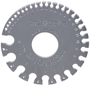 - Gage provides measurements from 0 to 36 on one face; decimal equivalents on reverse side