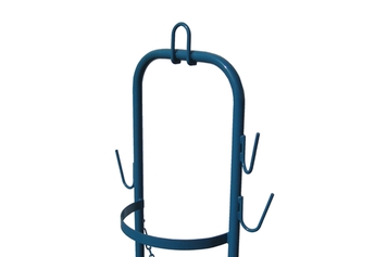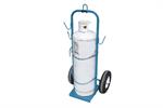 A safe and easy way to transport a 100 lbs propane tank to and around the roof. The single voyager was designed to carry one propane tank securely nestled inside its frame and held in place by chains. Hooks are provided to keep your torch and hose from dragging on the roof. You can even carry a fire extinguisher. Features a lifting ring to safely lift the voyager 1 and tank to the roof and a bent lip to avoid damaging the roof membrane.